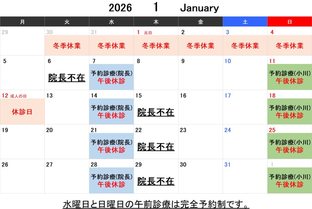 ・水曜午前と日曜午前のみ完全予約制にて診療を行っております。