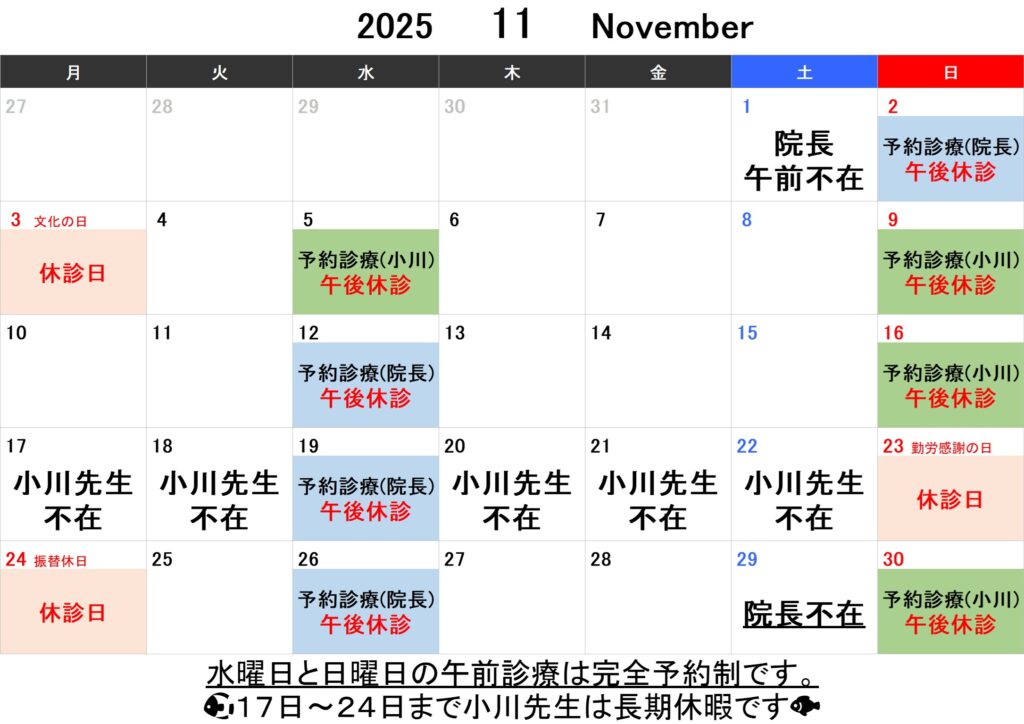 ・水曜午前と日曜午前のみ完全予約制にて診療を行っております。